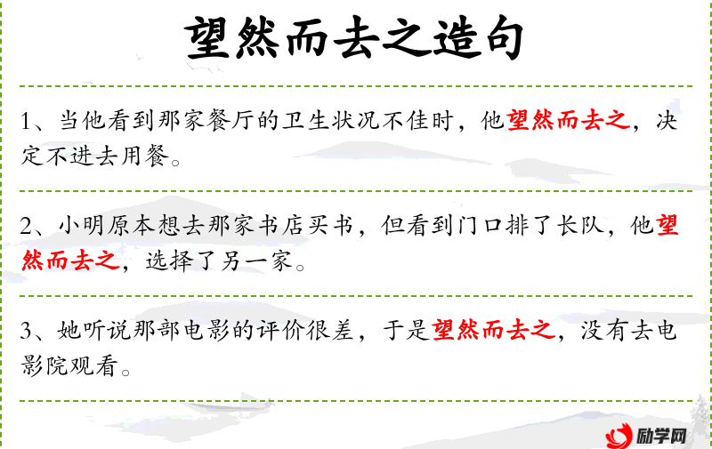 3. 【望然而去之】 - 望:看;去:离去。形容看一眼就走开的情状。