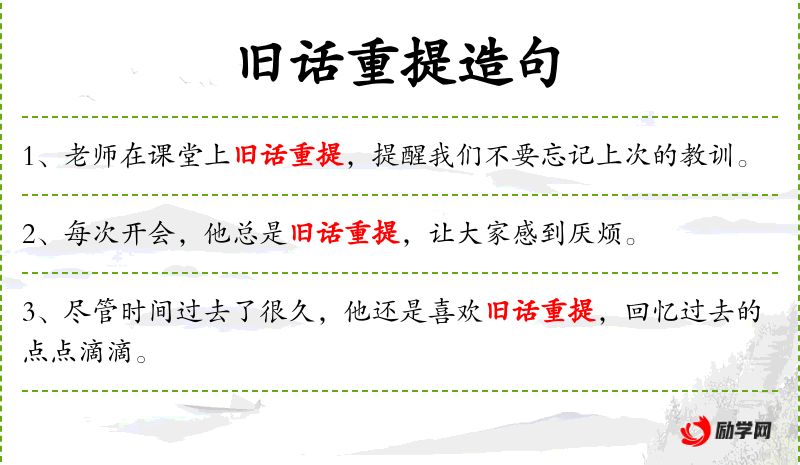 6. 【旧话重提】 过去说过的,现在又提起了。