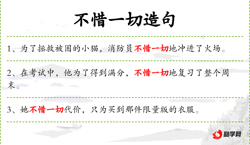 1. 【不惜一切】 为了达到目的不吝惜所花费的代价。