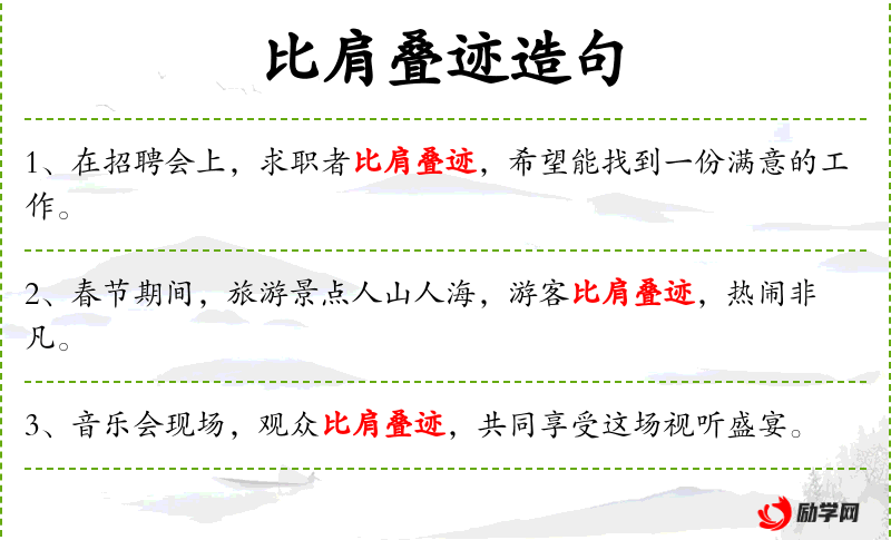 3. 【比肩叠迹】 - 肩膀相靠,足迹相叠。形容人多。