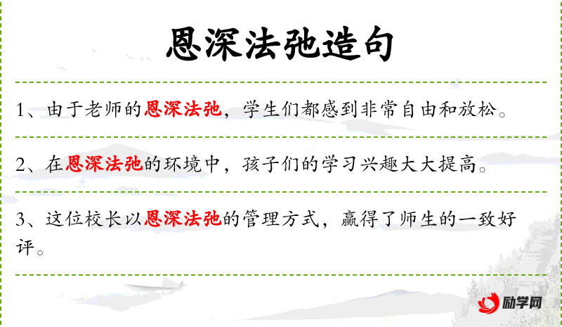 - 学生们能够在恩深法弛的情况下,自觉遵守学校的规章制度。