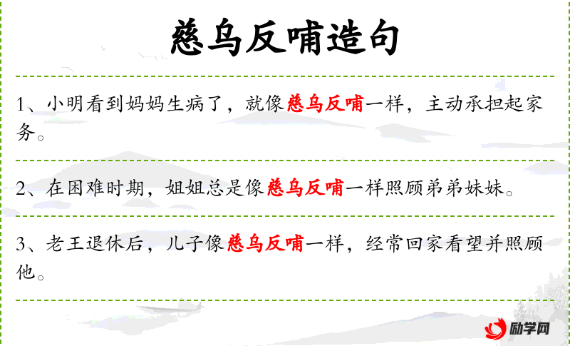 - 慈乌反哺:源自**传统文化,强调孝道和尊敬长辈。