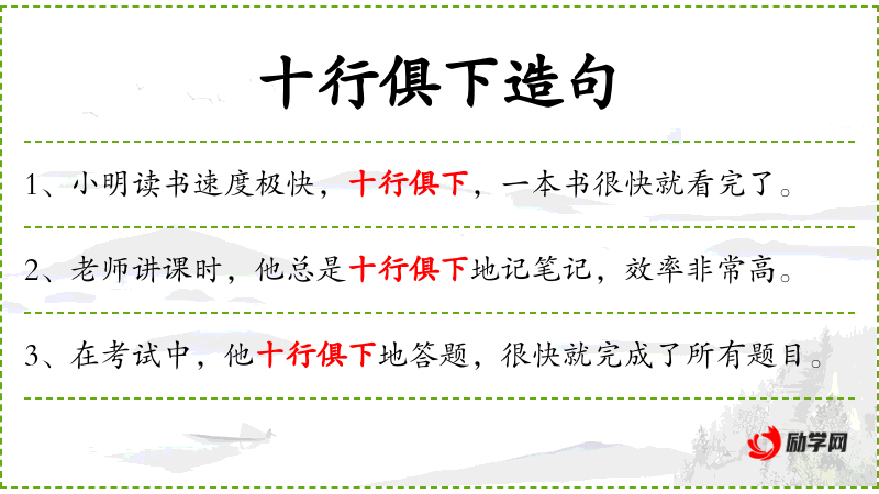 - 成语、典故:“十行俱下”可能源自古代文学,形容阅读或解题速度极快。