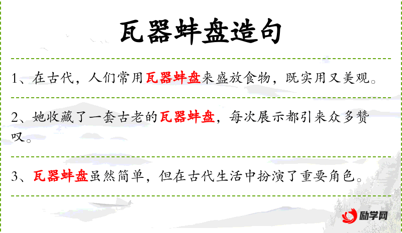 3. 【瓦器蚌盘】 - 泛指粗陋的食器。形容生活俭朴。