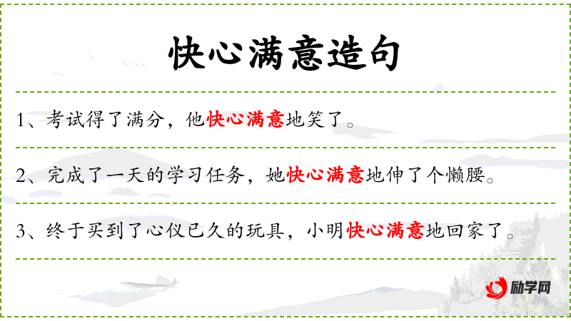 - 快心满意地:形容心情愉悦,对结果感到满意。
