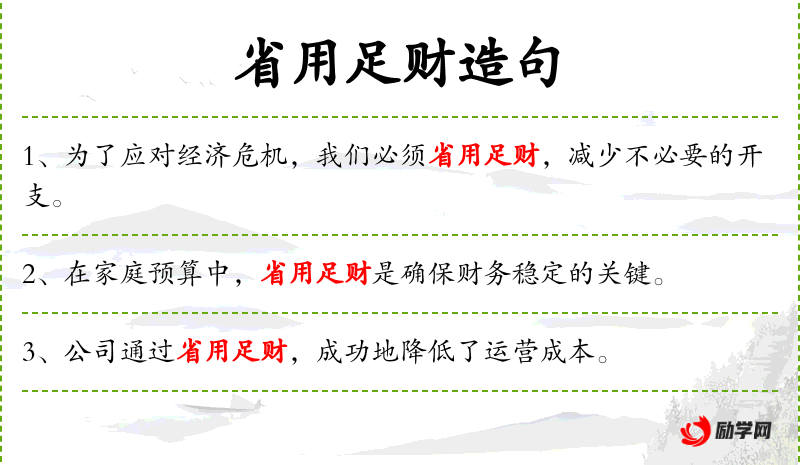 6. 【省用足财】 减省费用,积聚财富。
