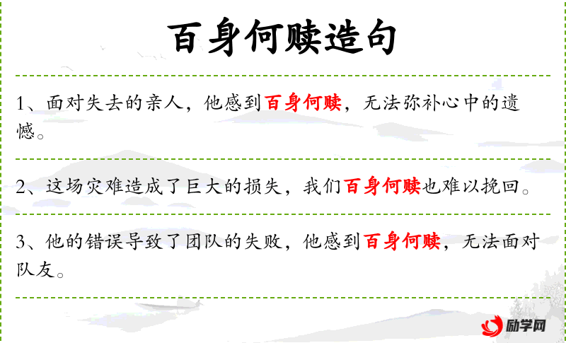 4. 【百身何赎】 - 百身:自身死一百次;赎:抵。拿一百个我,也无法把你换回来了。表示极沉痛地悼念。