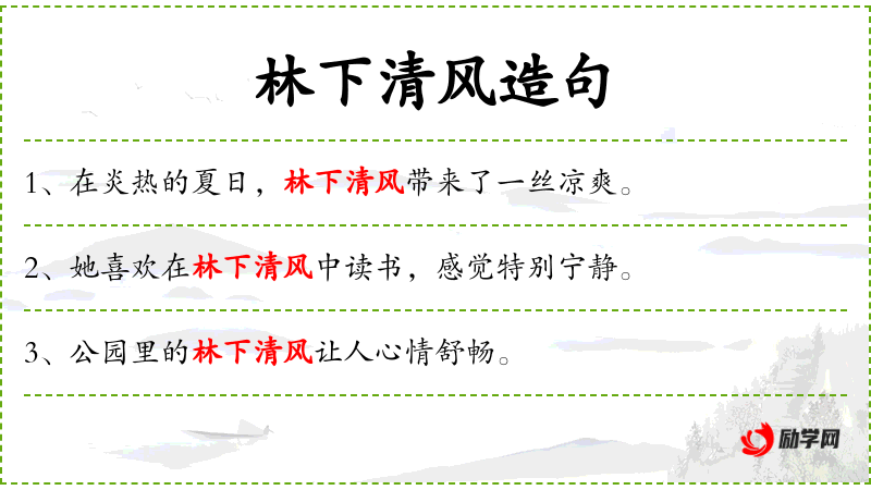 3. 【林下清风】 - 指女子态度娴雅、举止大方。同“林下风气”。