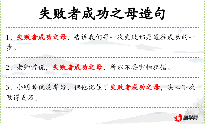句子:“学生们应该理解失败者成功之母的含义,这样才能在学*中不断进步。”