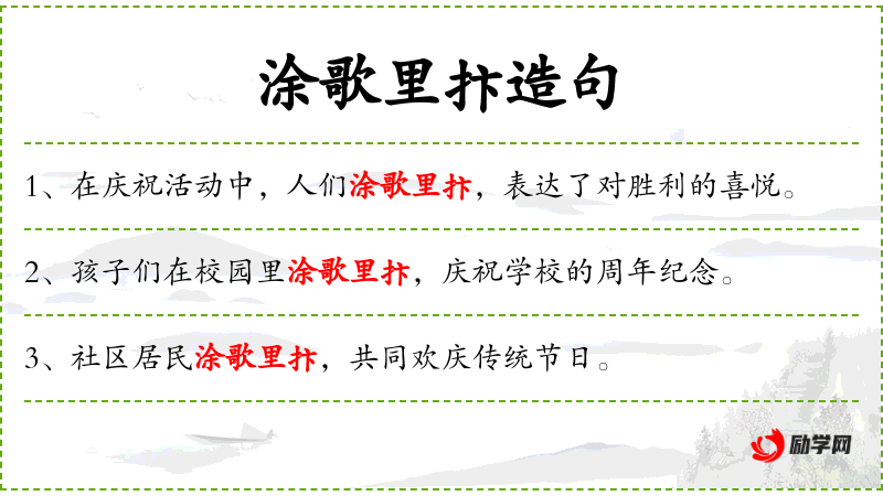 4. 【涂歌里抃】 - 路途的人歌诵,里巷的人抃舞。形容百姓欢欣快乐的升平景象。