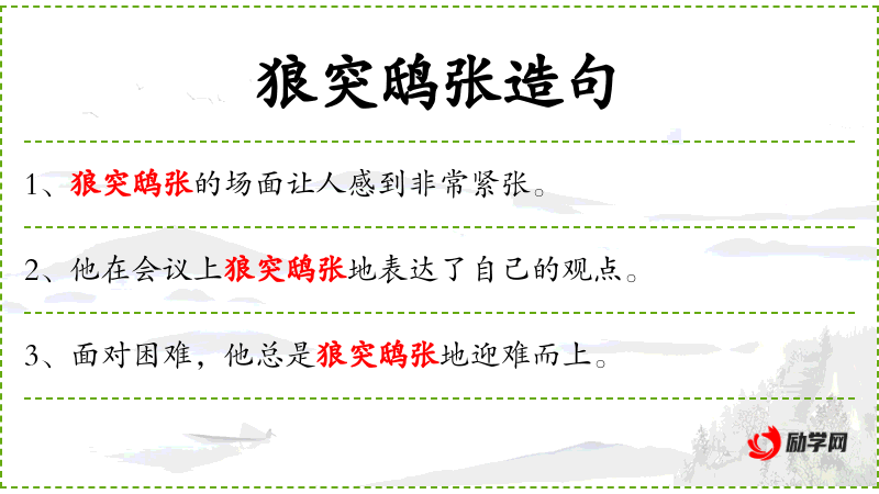 2. 【狼突鸱张】 - 像狼一样奔突,像鹞鹰一样张开翅膀。形容坏人猖狂嚣张到了极点。