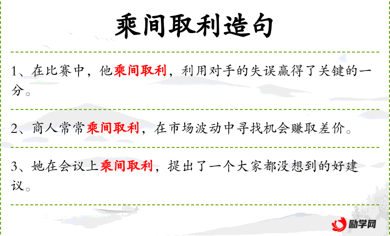 - 乘间取利:利用机会获取利益