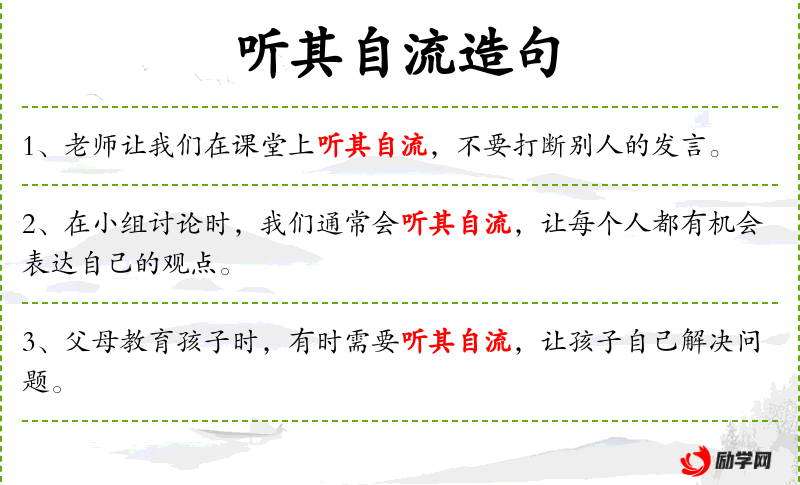 句子:“老师让我们在课堂上听其自流,不要打断别人的发言。”