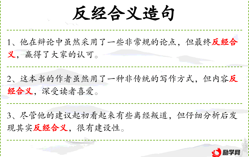 - 反经合义:指虽然违背常规,但符合道理或正义。