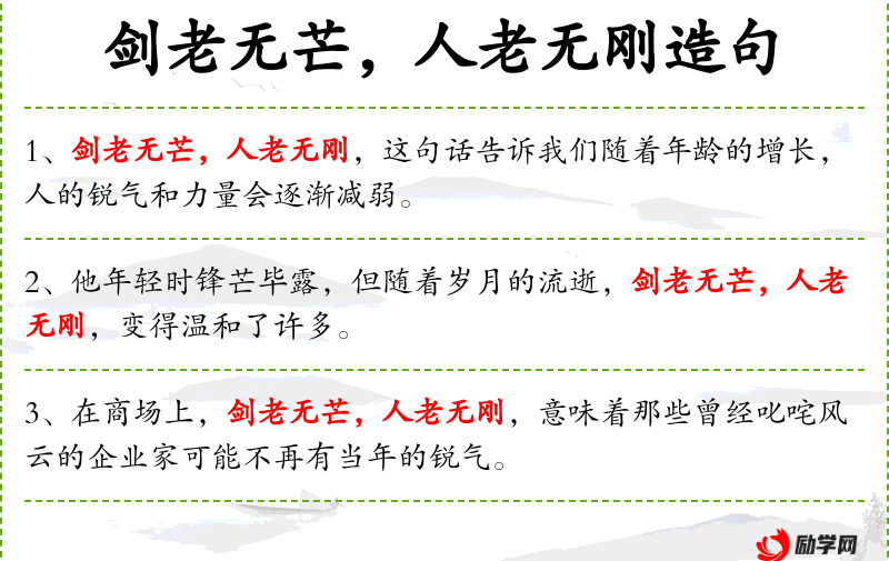 句子:“剑老无芒,人老无刚,这句话用来形容那些曾经英勇无比的战士,如今已不再有当年的勇猛。”