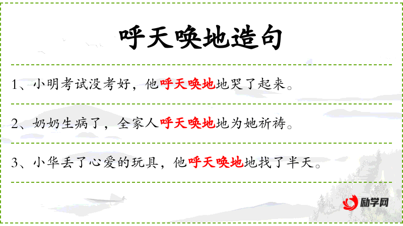 - 呼天唤地:成语,形容非常焦急地呼唤。