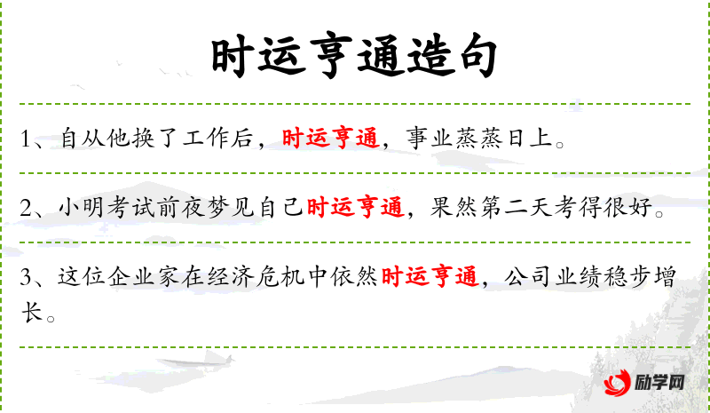 - 时运亨通:形容运气好,事情顺利。
