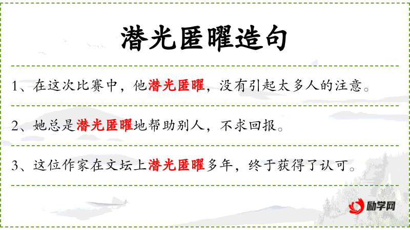 4. 【潜光匿曜】 - 隐藏光采。常指隐居。同“潜光隐耀”。