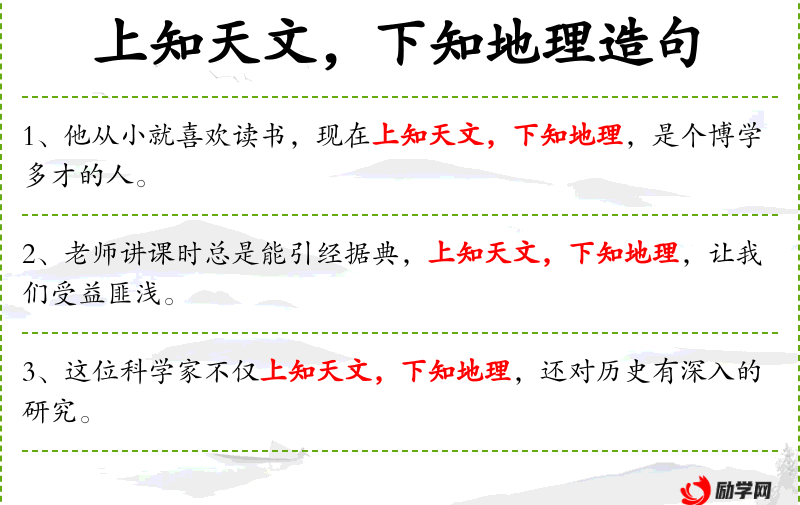 - 上知天文,下知地理:形容知识非常广泛,涵盖天文学和地理学。
