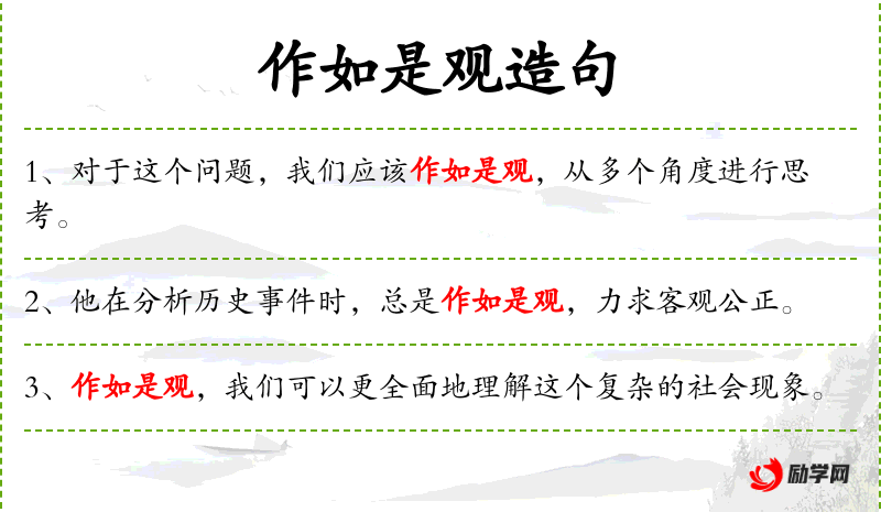 - 作如是观:这是一个汉语成语,意思是按照这样的观点或方式来看待事物。