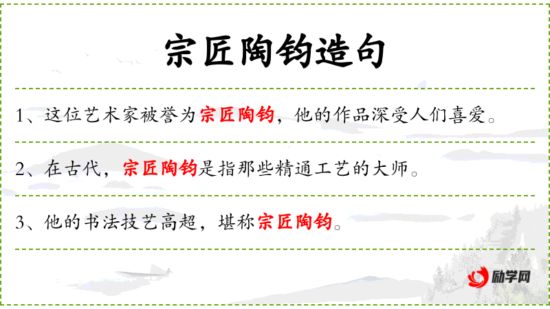 句子:“[宗匠陶钧的称号是对他多年艺术成就的肯定。]”