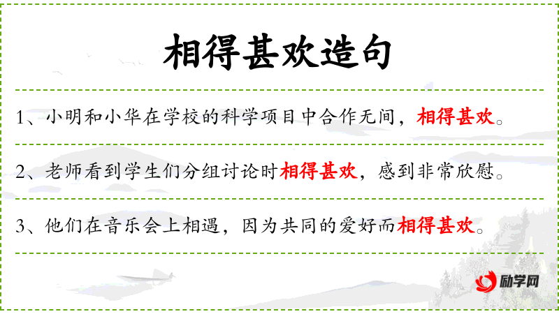3. 【相得甚欢】 - 得:投合。形容双方相处融洽,非常快乐。