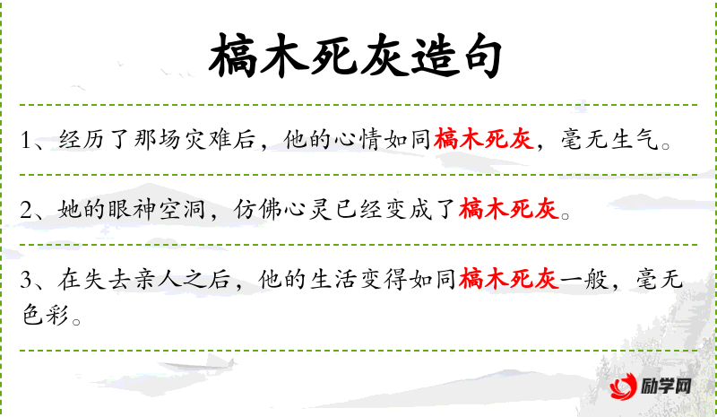 枯干的树木和火灭后的冷灰。比喻心情极端消沉,对一切事情无动于衷。