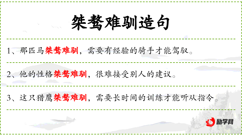 5. 【桀骜难驯】 - 指凶悍倔强,难以驯服。