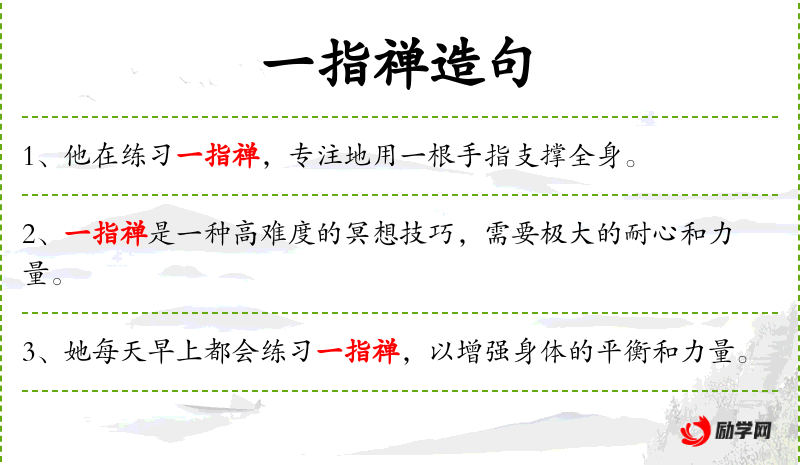 “一指禅”可能与**的修行传统有关,它不仅是一种身体上的挑战,也是一种精神上的修炼。了解这一背景有助于更深入地理解句子的文化内涵。