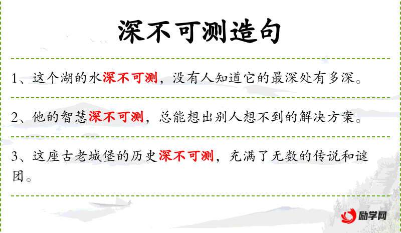 5. 【深不可测】 - 深得无法测量。比喻对事物的情况捉摸不透。
