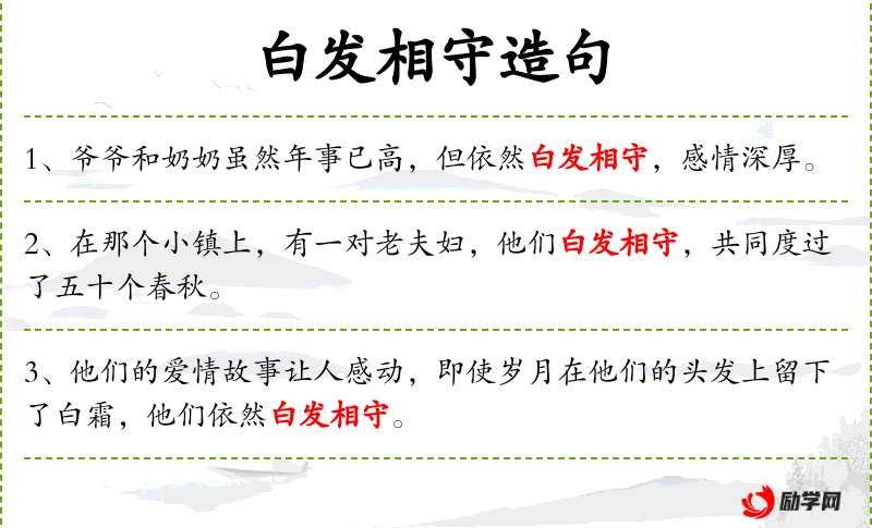 1. 【白发相守】 - 白头:头发白。指夫妻相爱相守一直到老。