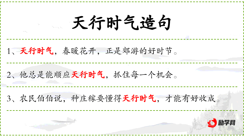 - “老师建议我们,为了更有效地学,应当顺应天行时气,抓住最佳的学时机。”