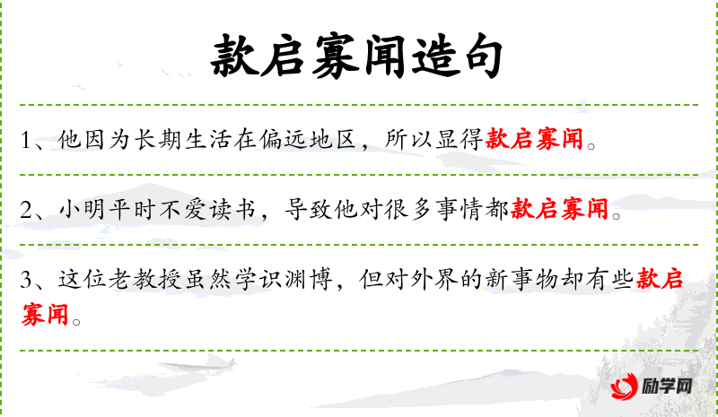 4. 【款启寡闻】 - 款启:见识狭小。形容学问浅、见识少。