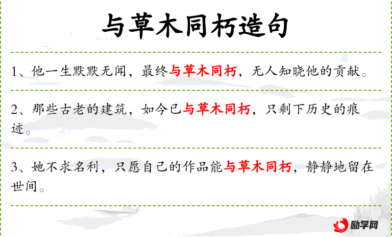 - 谓语:与草木同朽