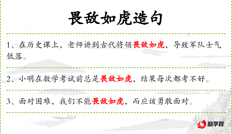 3. 【畏敌如虎】 - 害怕敌人如同怕虎一般。