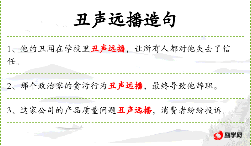 1. 【丑声远播】 - 坏名声传播得很远。