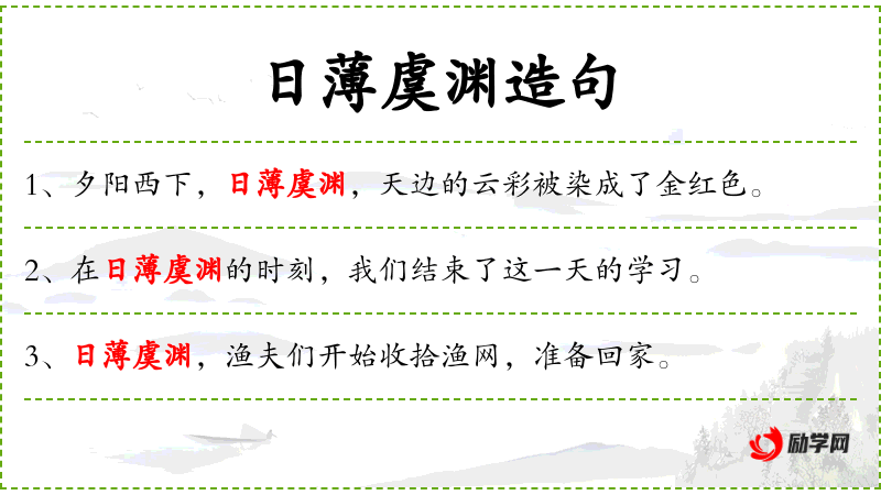 - *日虞渊:这个成语源自古代,形容太阳快要落山,常用来比喻事物接近尾声或时间紧迫。