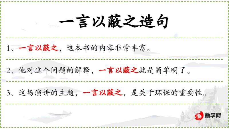 - 一言以蔽之:用一句话概括。
