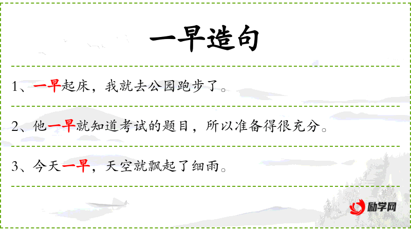 1. 【一早】 - (~儿);清晨:今天~他就下乡去了。
