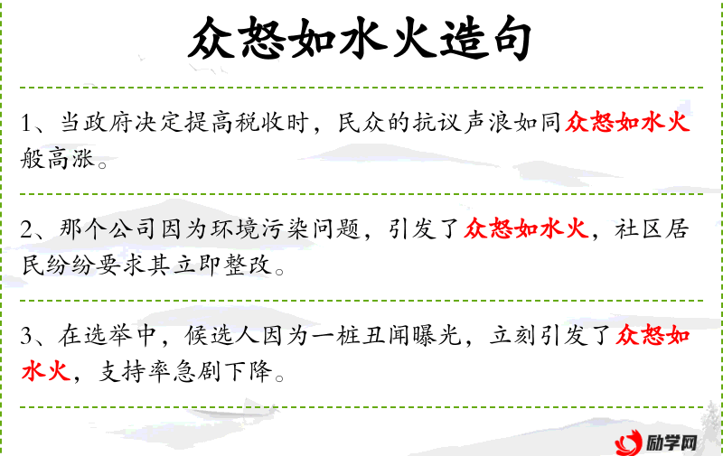 1. 【众怒如水火】 众人的愤怒如同水火一样无情。形容百姓的意愿不可冒犯。