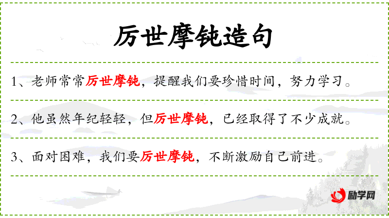 - 厉世摩钝:这个成语源自**传统文化,强调教育和启迪的重要性。在现代社会,这样的成语常用于形容具有深远影响力的演讲或教育活动。