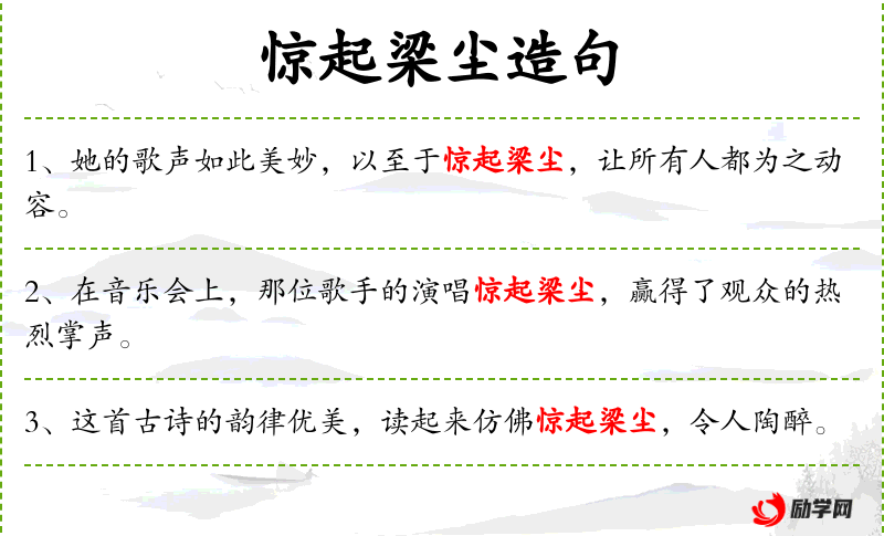 3. 【惊起梁尘】 形容歌声高妙动人。