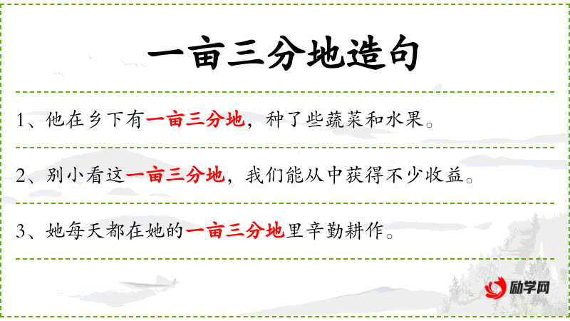 1. 【一亩三分地】 - 借指个人的生活圈子或职责范围.每个人都管好自己的~,集体的事情就好办了。