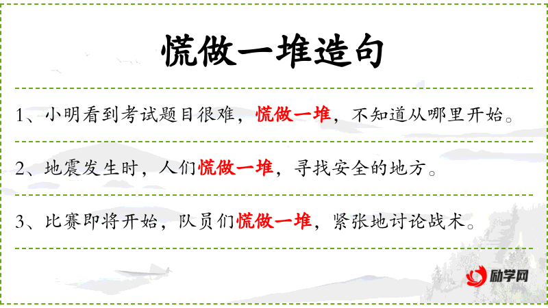 1. 【慌做一堆】 慌:惊慌。惊慌得乱成一团,理不清头绪。