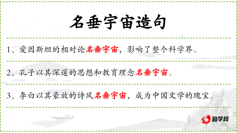 1. 【名垂宇宙】 垂:流传。名誉传遍天下。