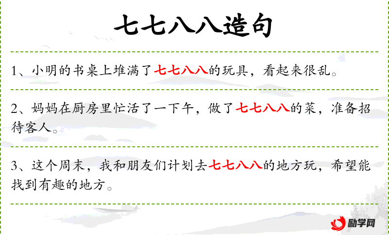 1. 【七七八八】 - ①犹言差不多。②犹言零零碎碎,各式各样。