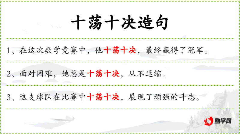 - 十荡十决:成语,形容作战勇猛,屡战屡胜。