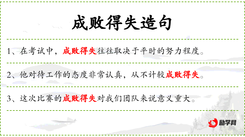 句子:“在考试中,成败得失往往取决于平时的努力程度。”