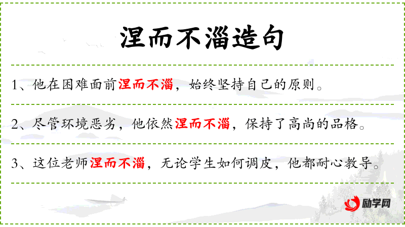 3. 【涅而不淄】 比喻品格高尚,不受恶劣环境的影响。同“涅而不缁”。