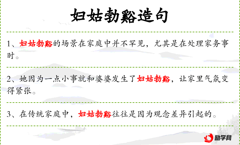 - 妇姑勃溪:成语,形容家庭中的小争吵。